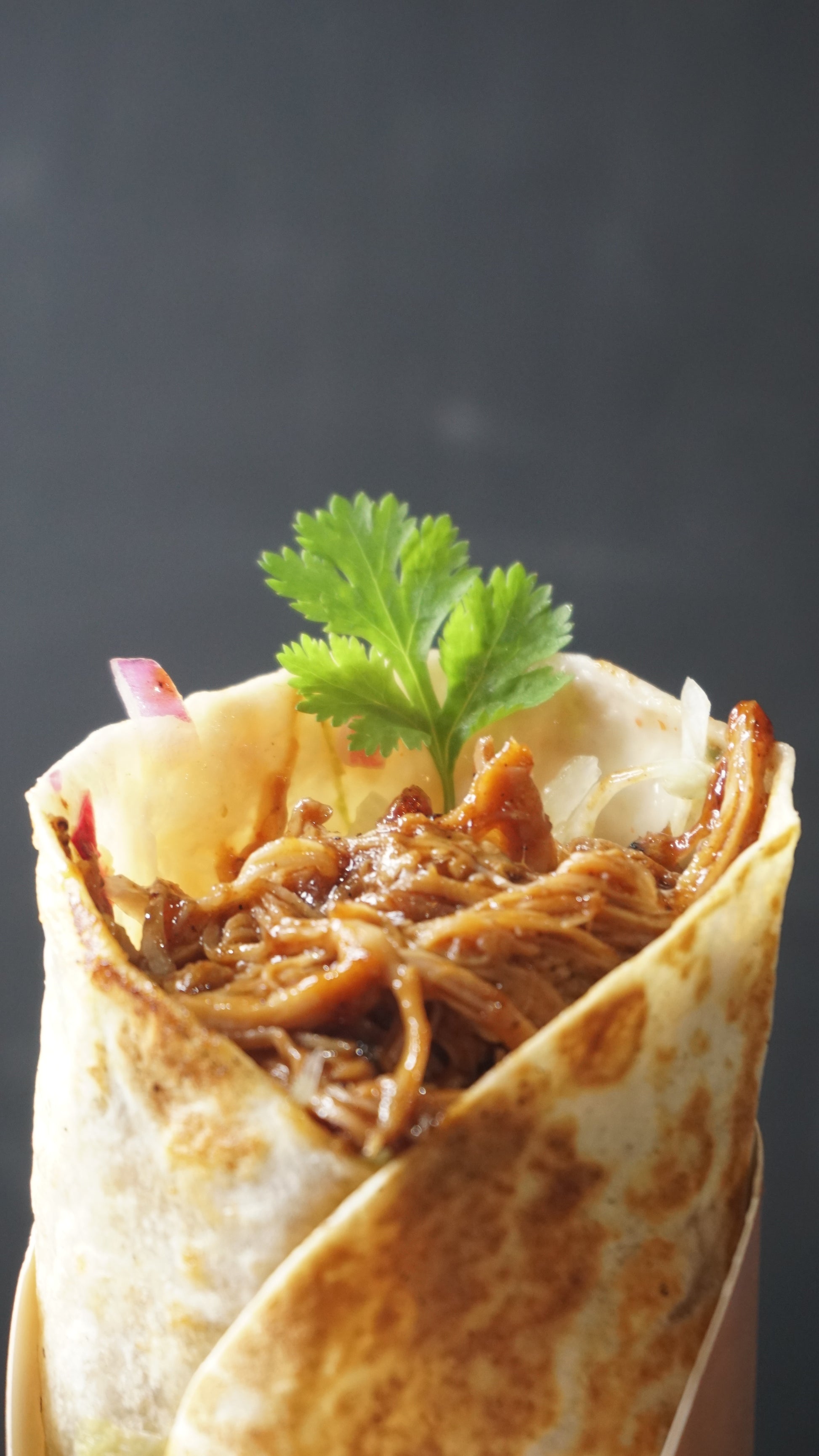 10' Crispy Wrap. Your choice of crispy chicken or slow-cooked pulled pork, with fresh lettuce, zesty Mexico salsa, golden fries, and smoky chipotle aioli — all wrapped and grilled to crispy perfection.