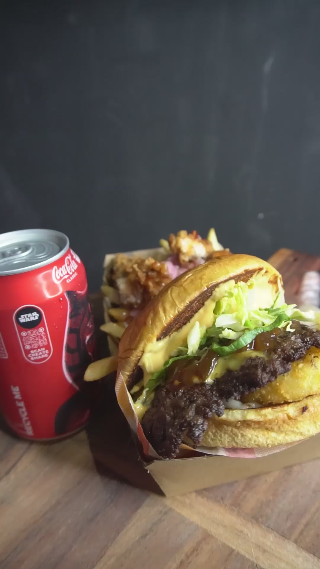 - Y NOT Burger - Smashed Beef Patty, American Cheese, Onion Jam, Hash Brown, Lettuce, Pickle, Kiwi Sauce, Aioli